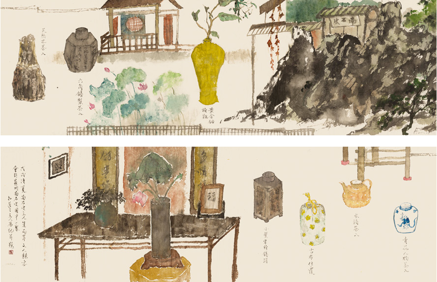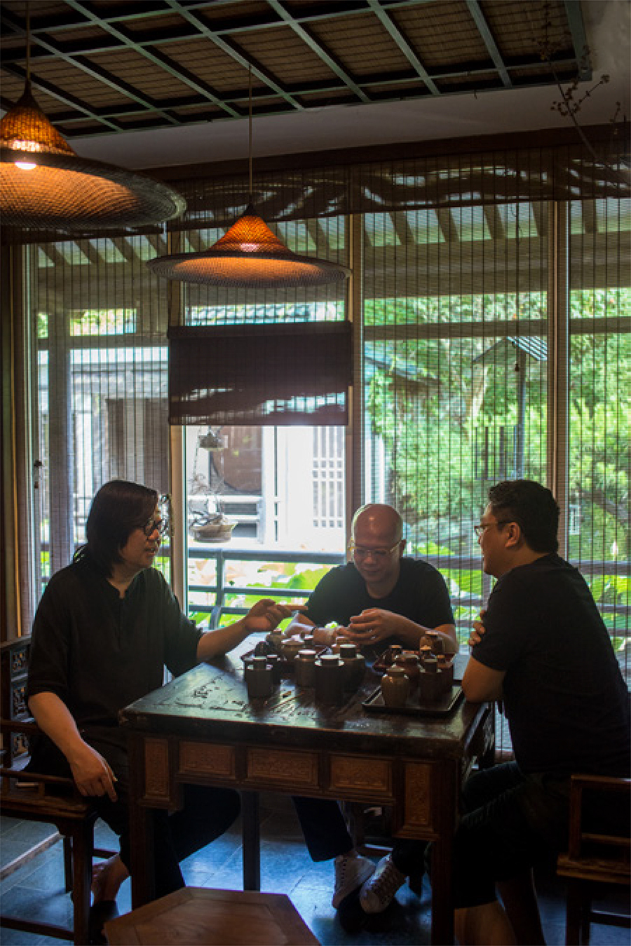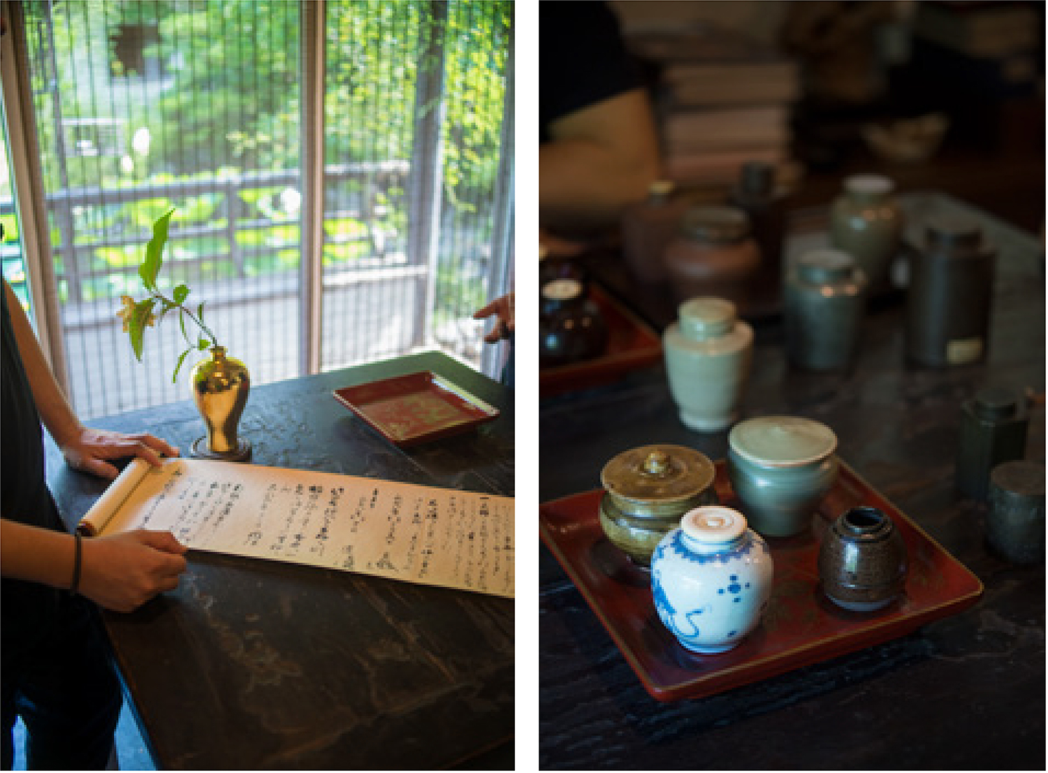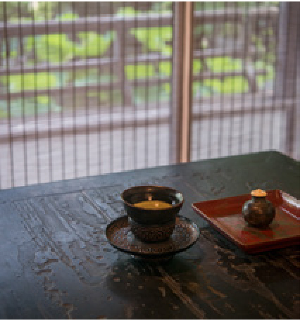 时值仲夏,清和幽雅的现代园林“南石皮记”内,池塘正著绿荷,竹木交荫,半侵幽斋,同趣者四人,瀹老茶,赏古器,共叙一场中日茶罐品鉴雅集