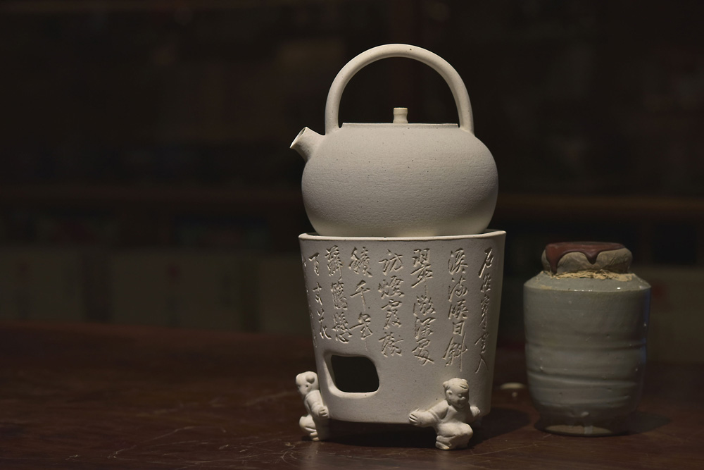 吳 「 伍中行出品的陶瓷茶器全部都是我親力親為設計和研發的。它們汲取了古代茶具的利弊,結合自身經驗,最後量化生產。在古代,泥壺是民間比較常見的器物,但容易燒裂。於是我創作和調配了手工白泥提樑燒水壺,這種壺乾燒加水繼續燒煮也不爆不裂。在器具的使用上,設計應更添助益與便利性,安全性上更要達到完美。」