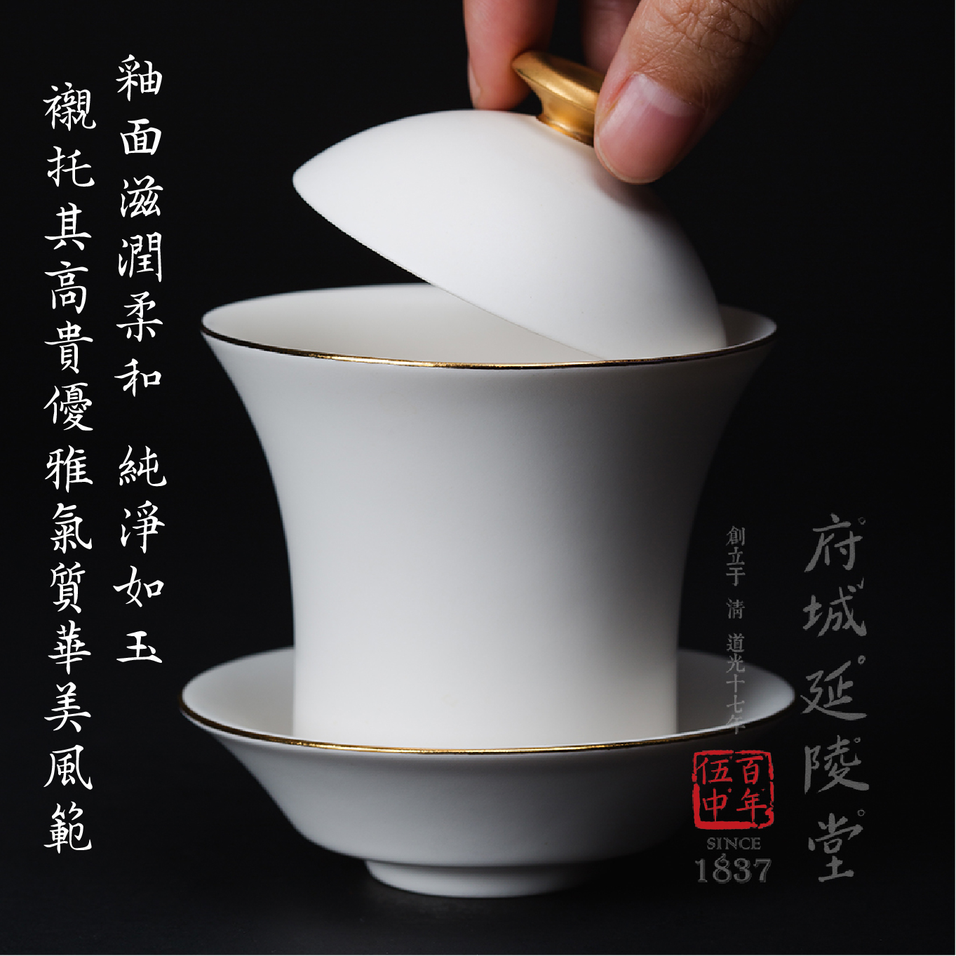 • 品名: 現代汝窯月白金帶蓋碗杯