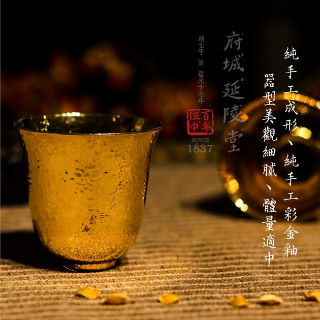 24K金釉錘目紋薄胎撇口杯