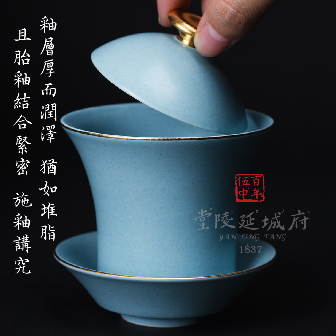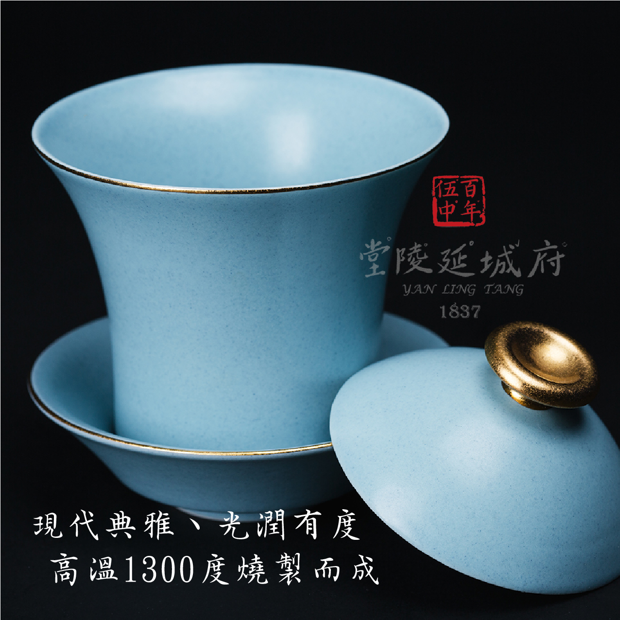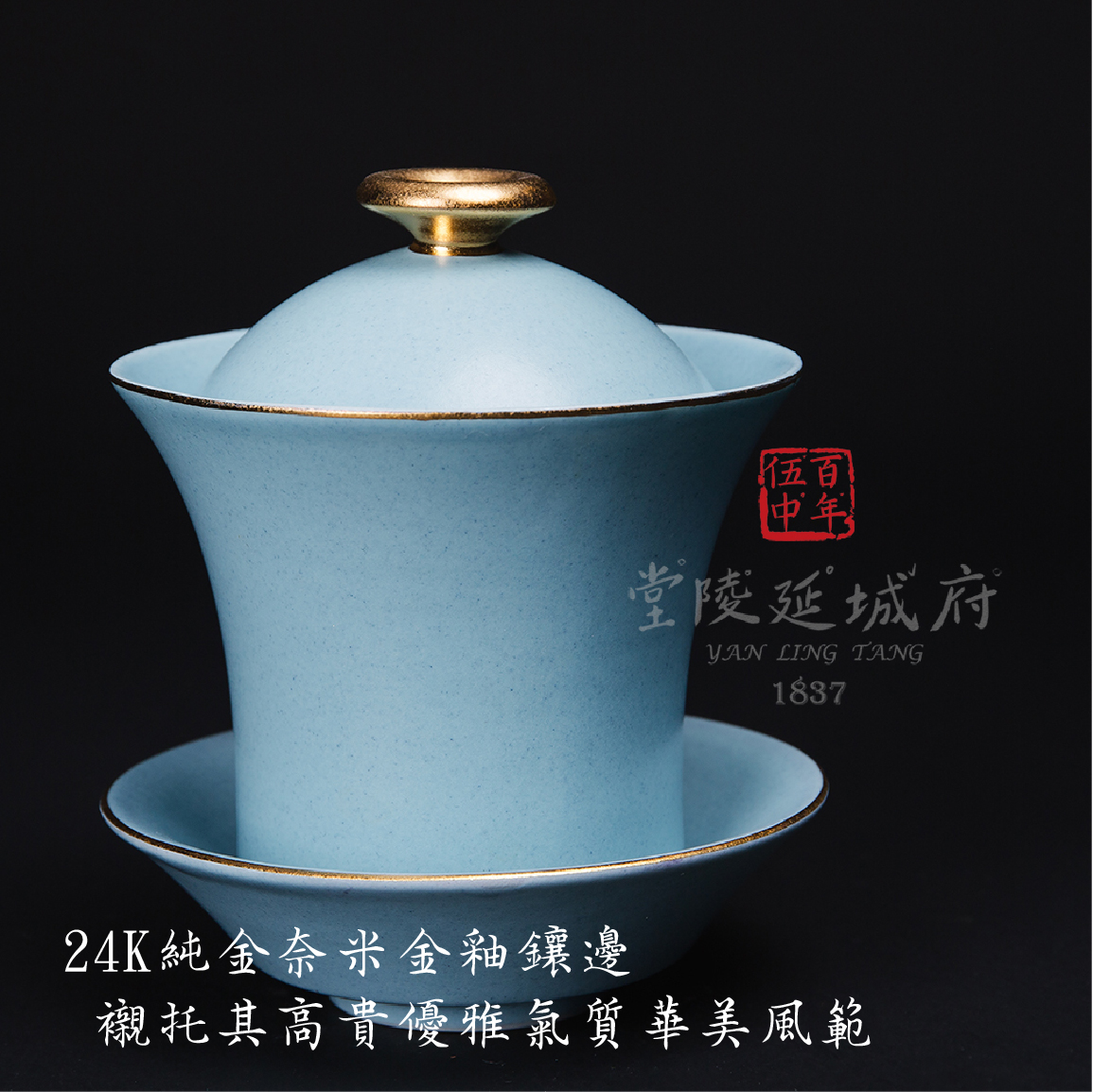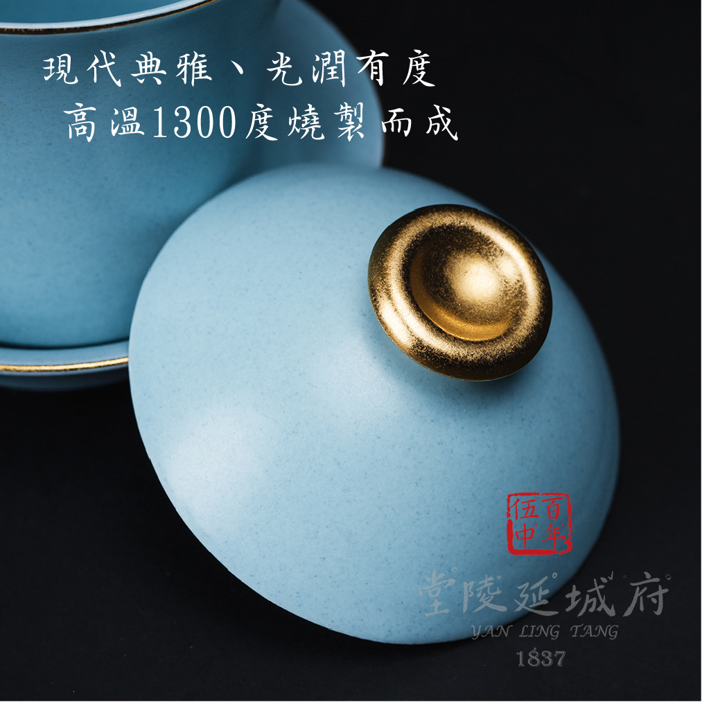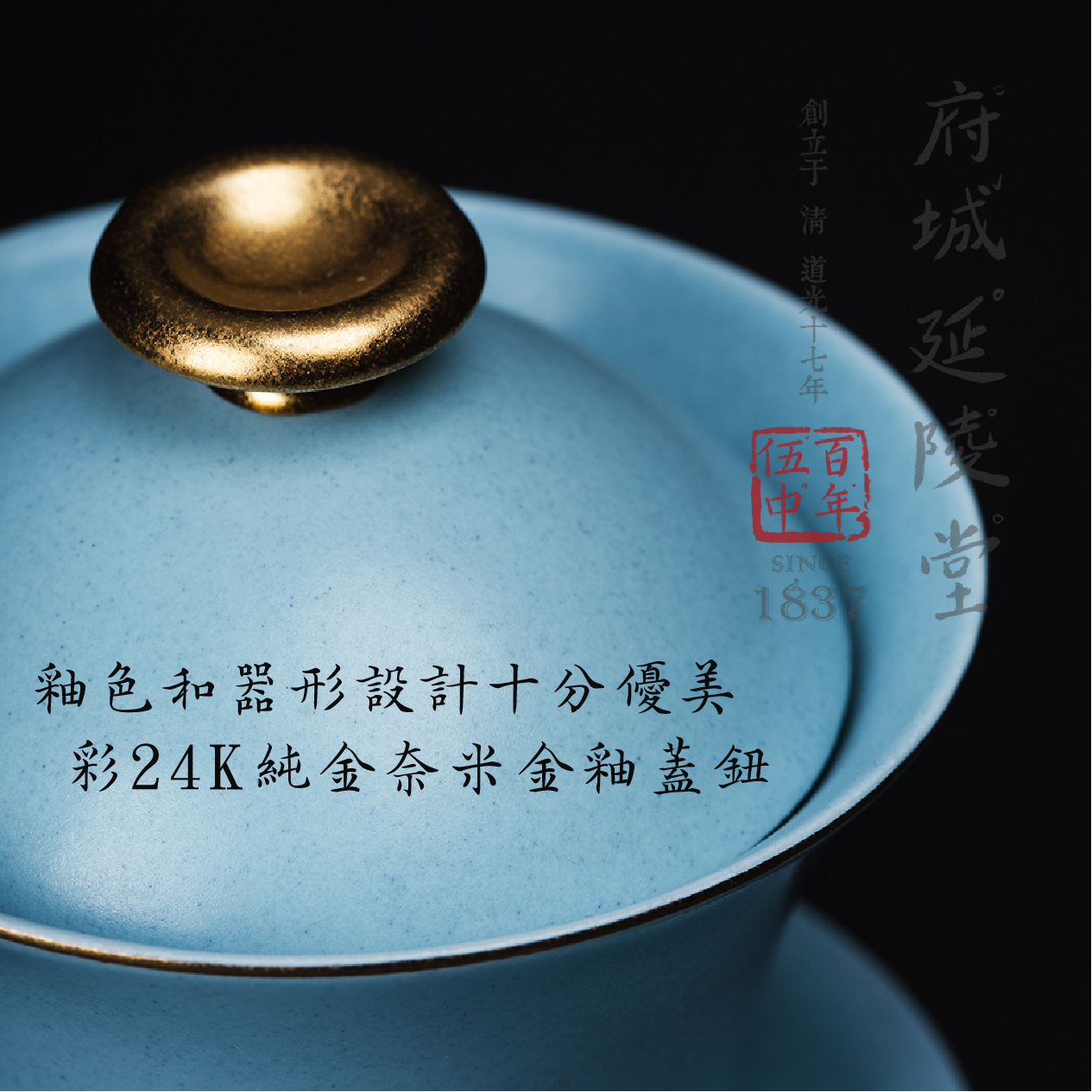 • 品名: 現代汝窯天青金帶蓋碗杯