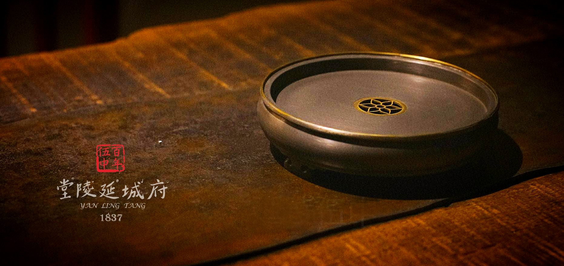 「潮」手工錫點銅壺承,有人叫茶船,有人叫茶海、茶池,上面放置杯、壺、蓋碗之類的茶器具,喜好品飲烏龍茶、單叢、岩茶類的利器,延陵伍中的壺承,「百姓日用即道」,處處是細節,自:尺度比例、卷邊、銅包邊、完美比例雲足,盡是最佳美器代表。