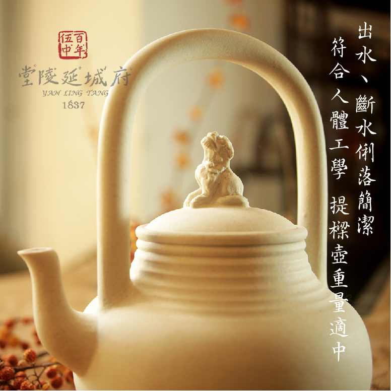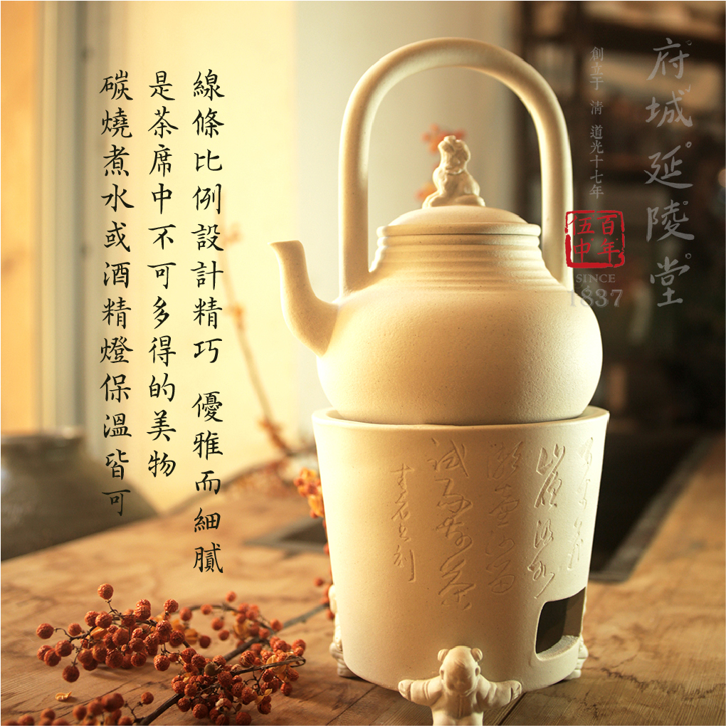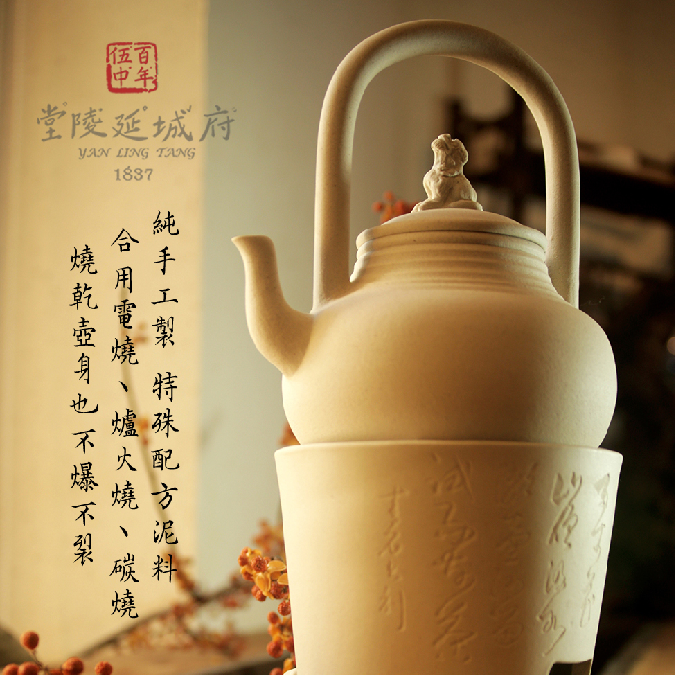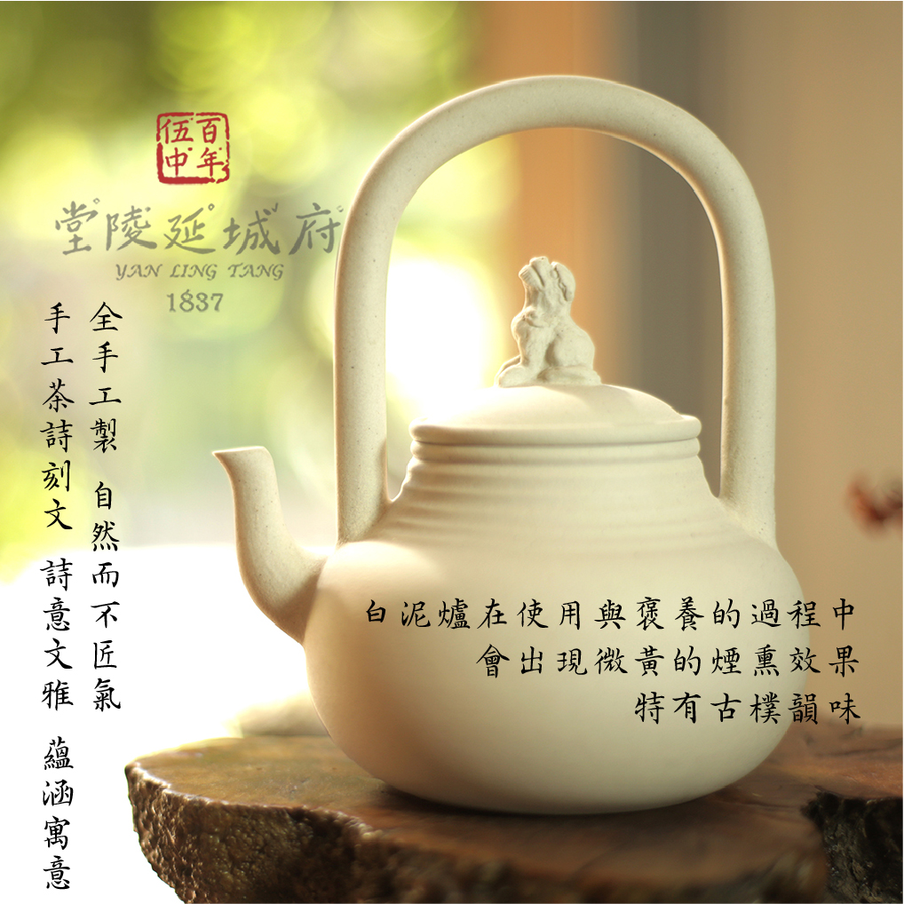 手工白泥仰獅提樑燒水壺+白泥三足鼎立童子風爐組
