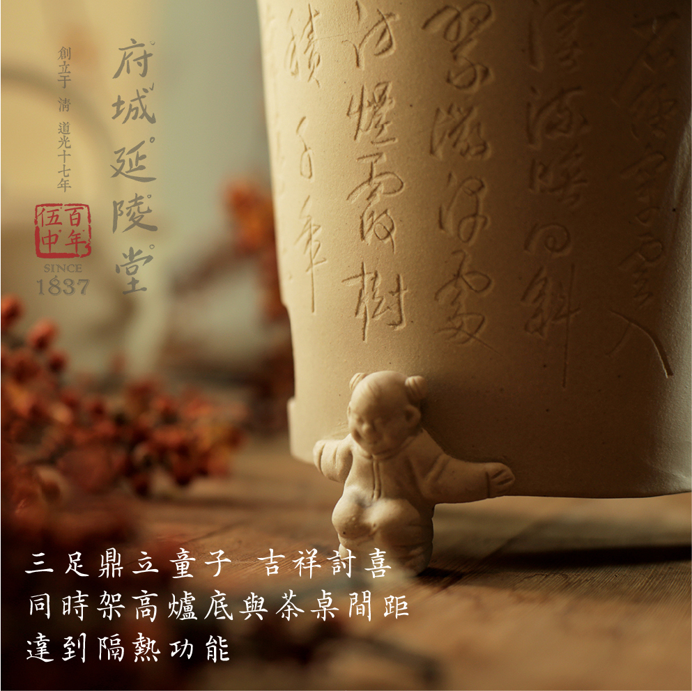 款識: 延陵堂 - 品名: 手工白泥三足鼎立童子爐